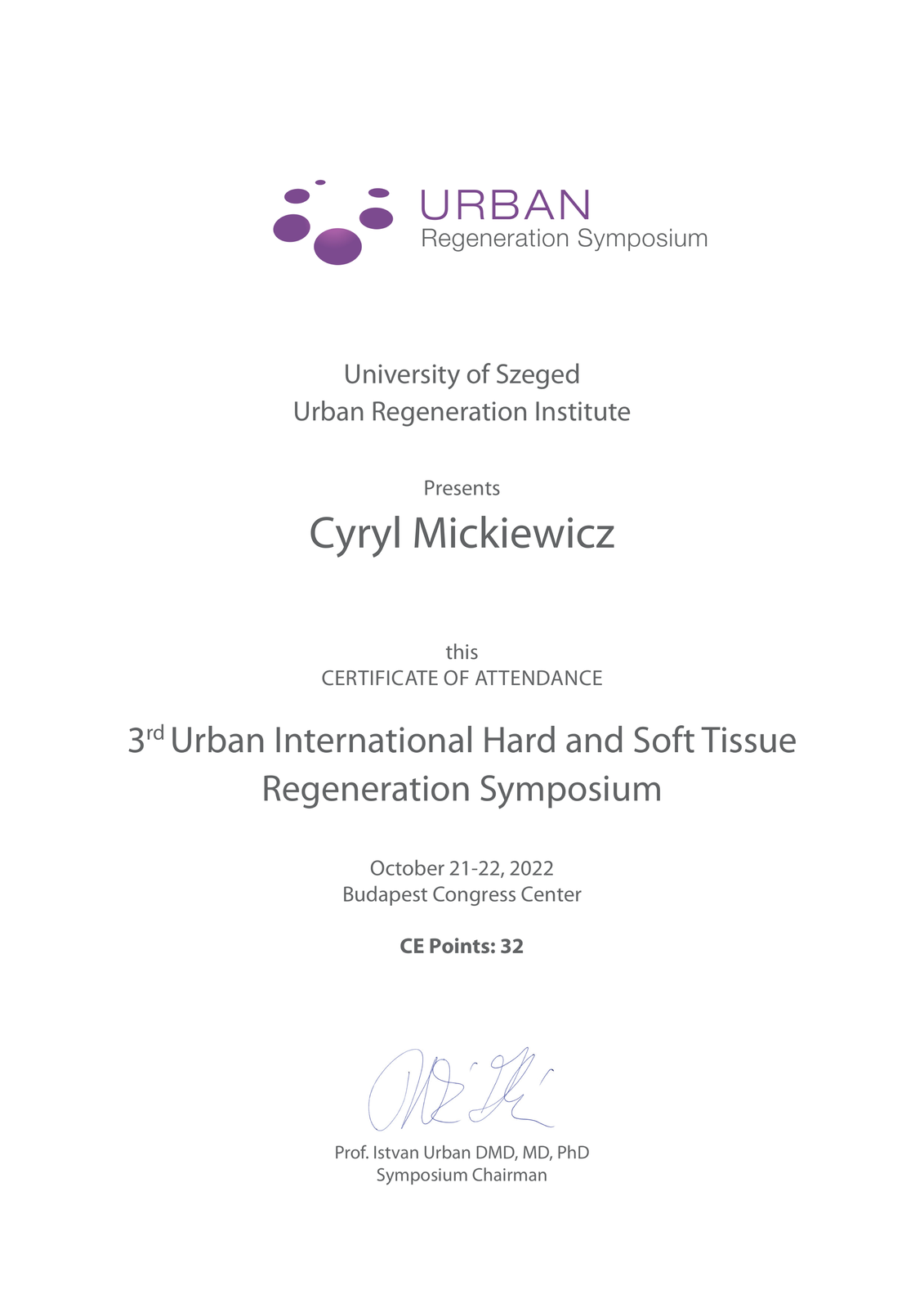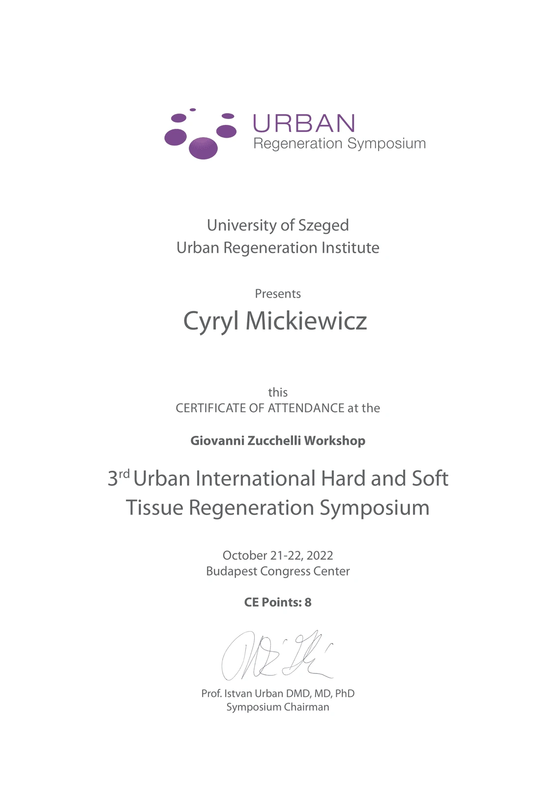 2017 rok - szkolenie u Istvána Urbana w Budapeszcie (Węgry).