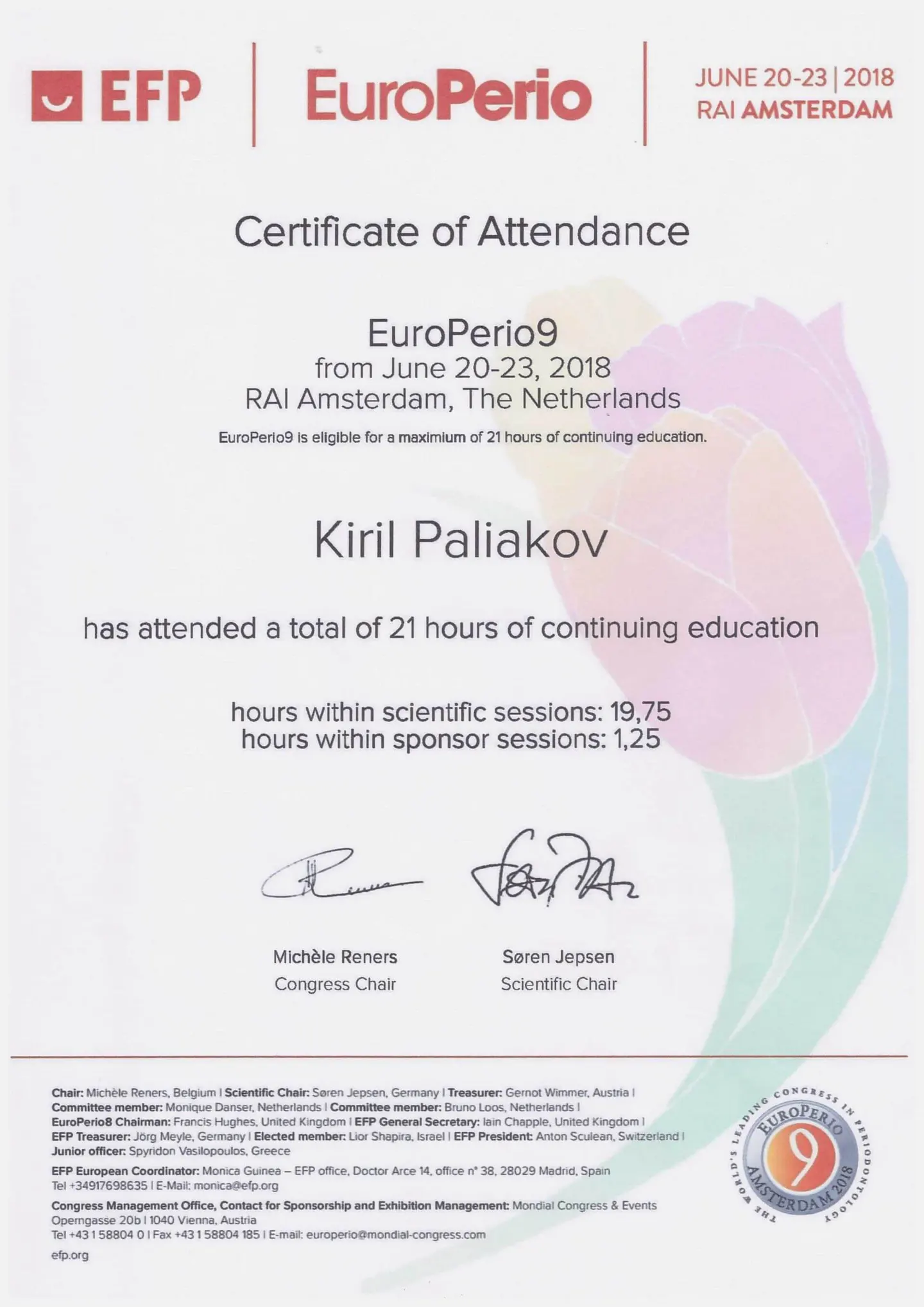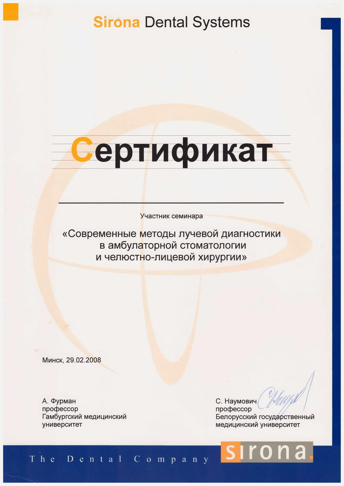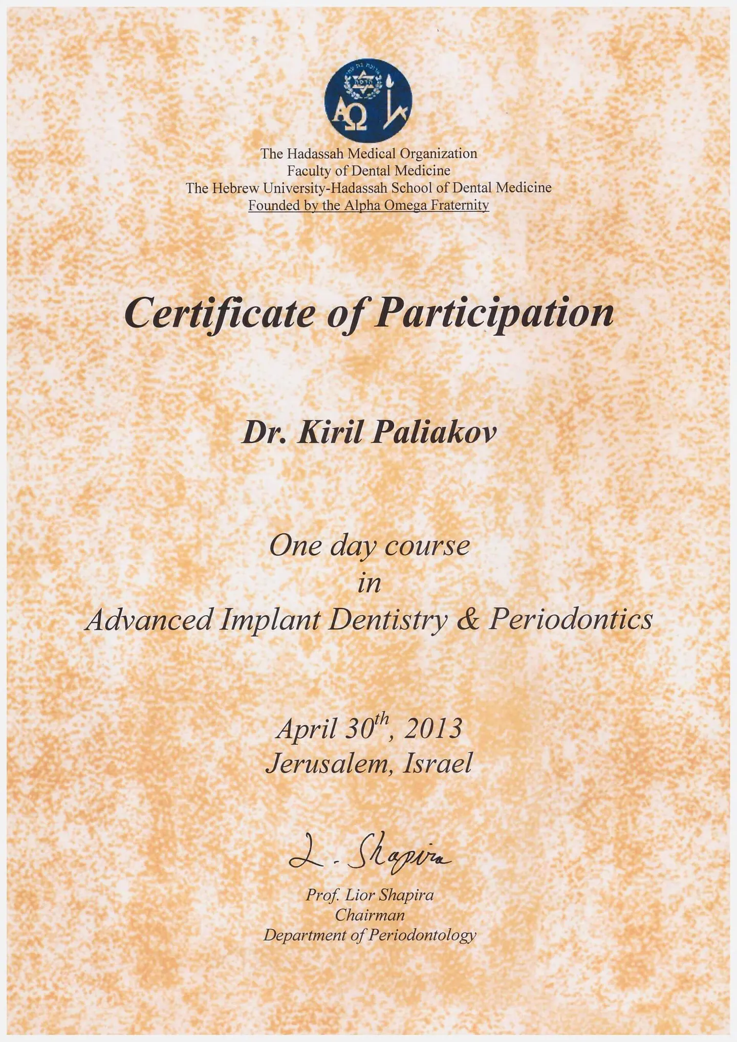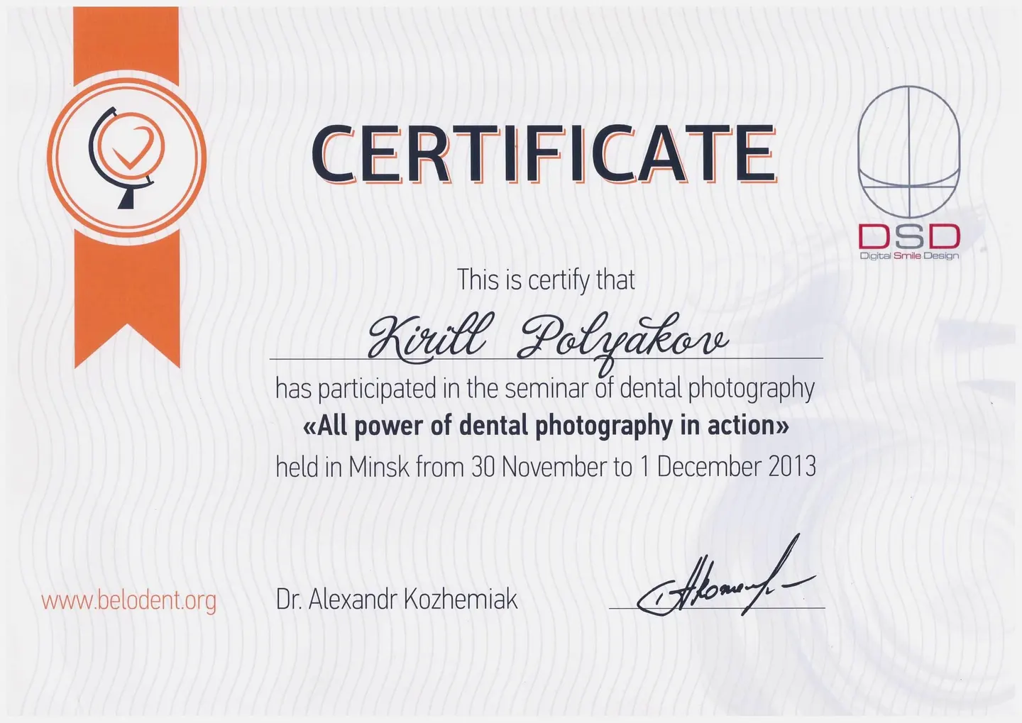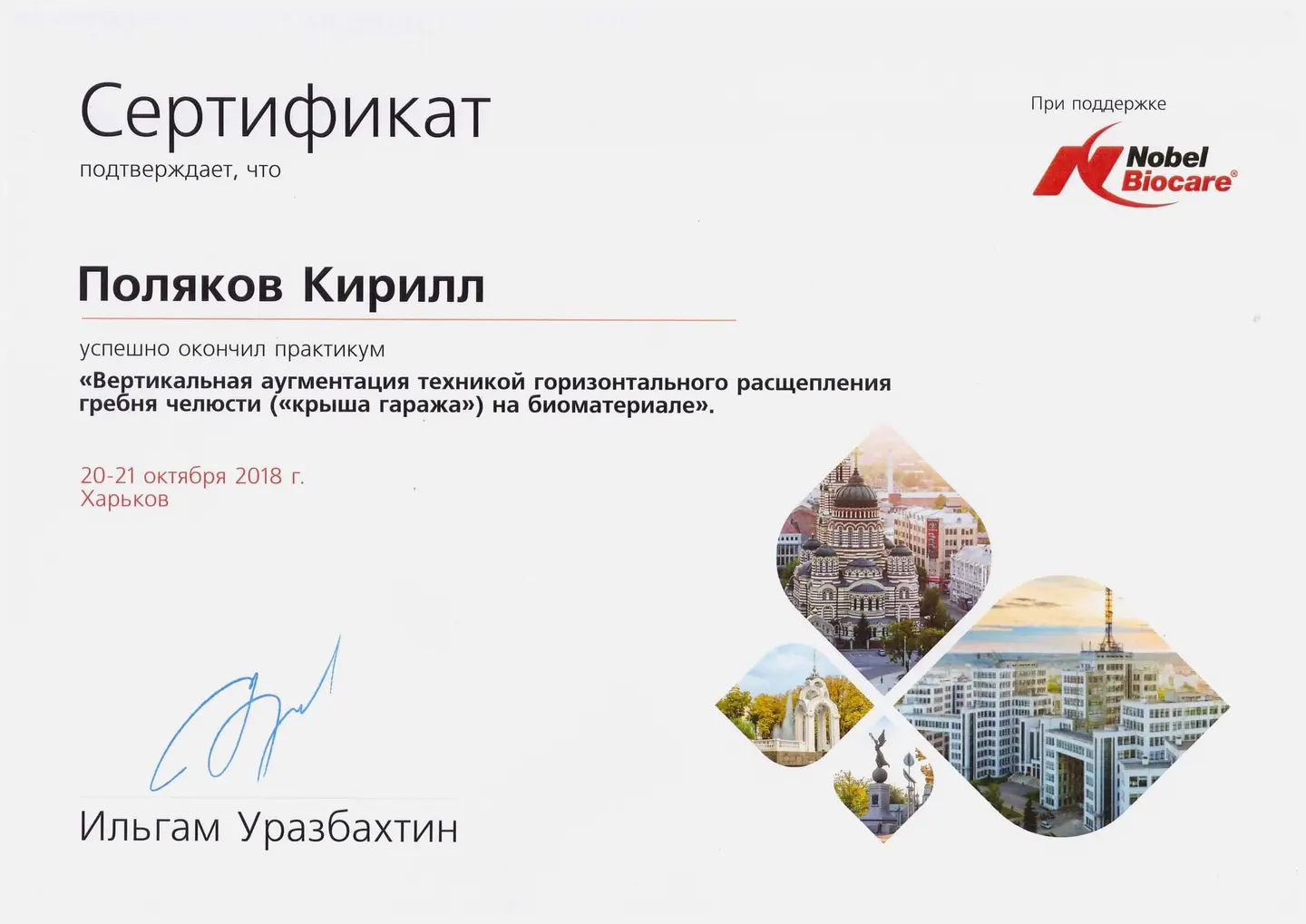 Обучение в Дунайском университете Кремса (Австрия), присвоено звание «Академический эксперт в области функции и дисфункции жевательного аппарата».