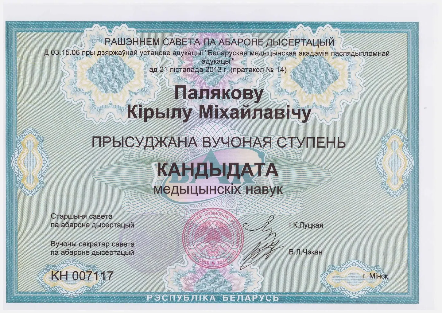 В 2013 году защитил кандидатскую диссертацию по теме: «Применение цельнокерамических ламинатов при реставрации твёрдых тканей зубов».