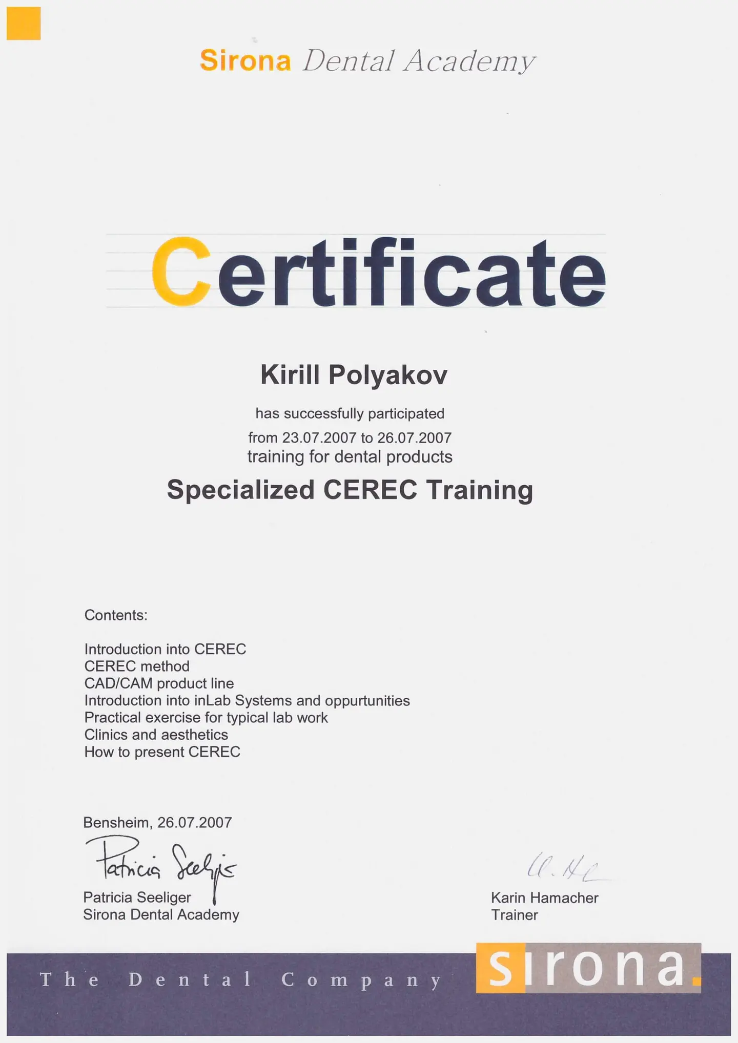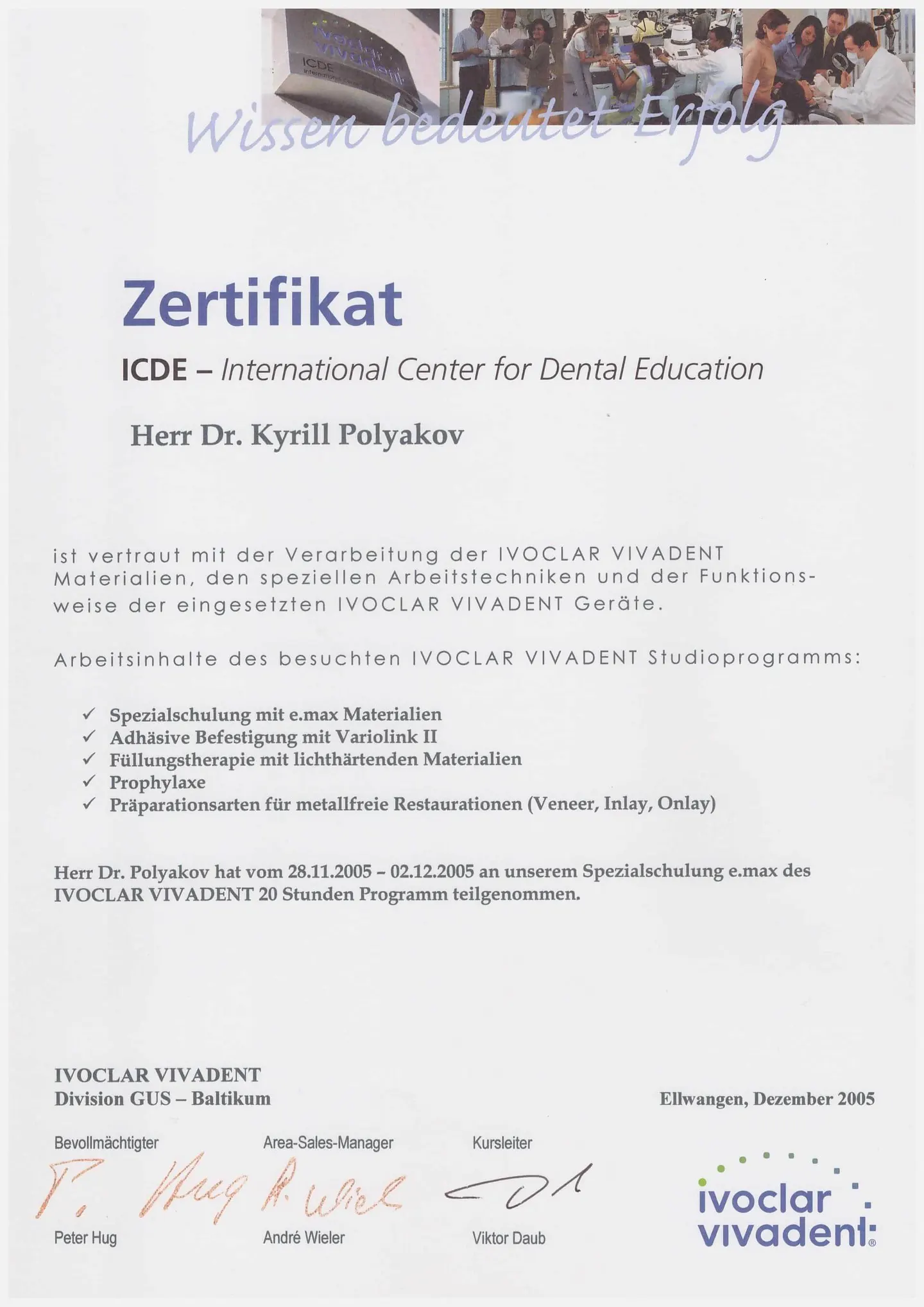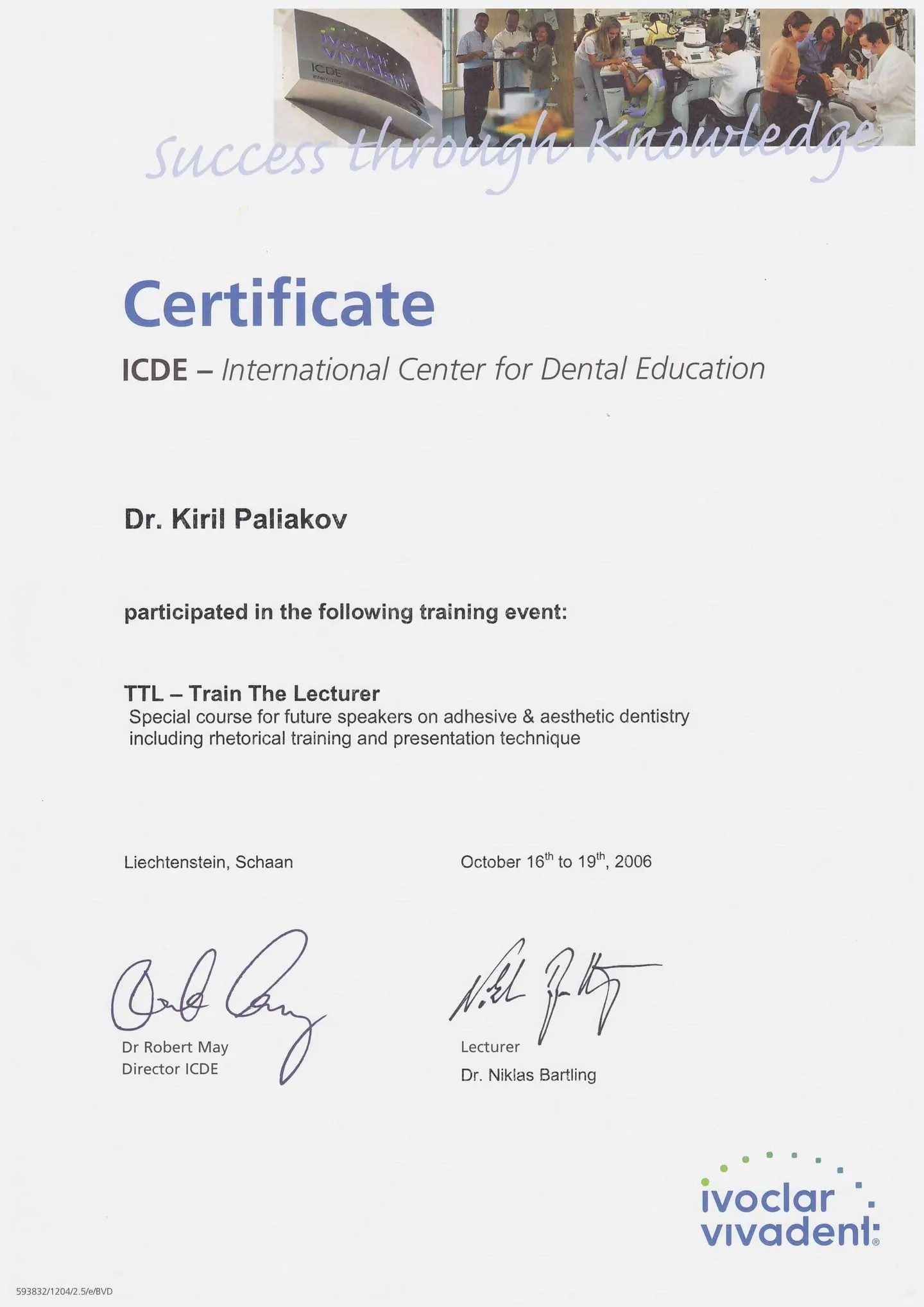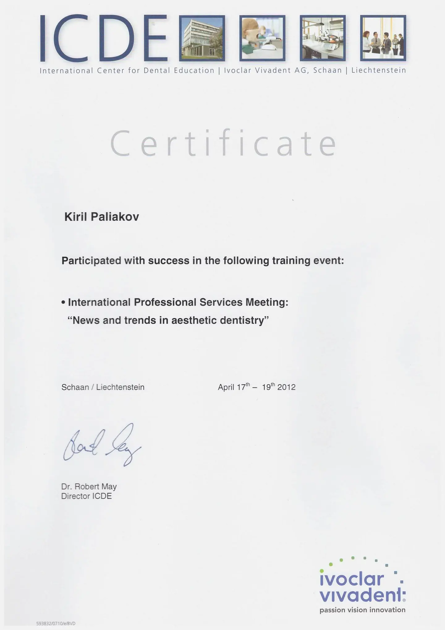 С 2004 года - клинический консультант, официальный лектор Ivoclar Vivadent (Лихтенштейн).