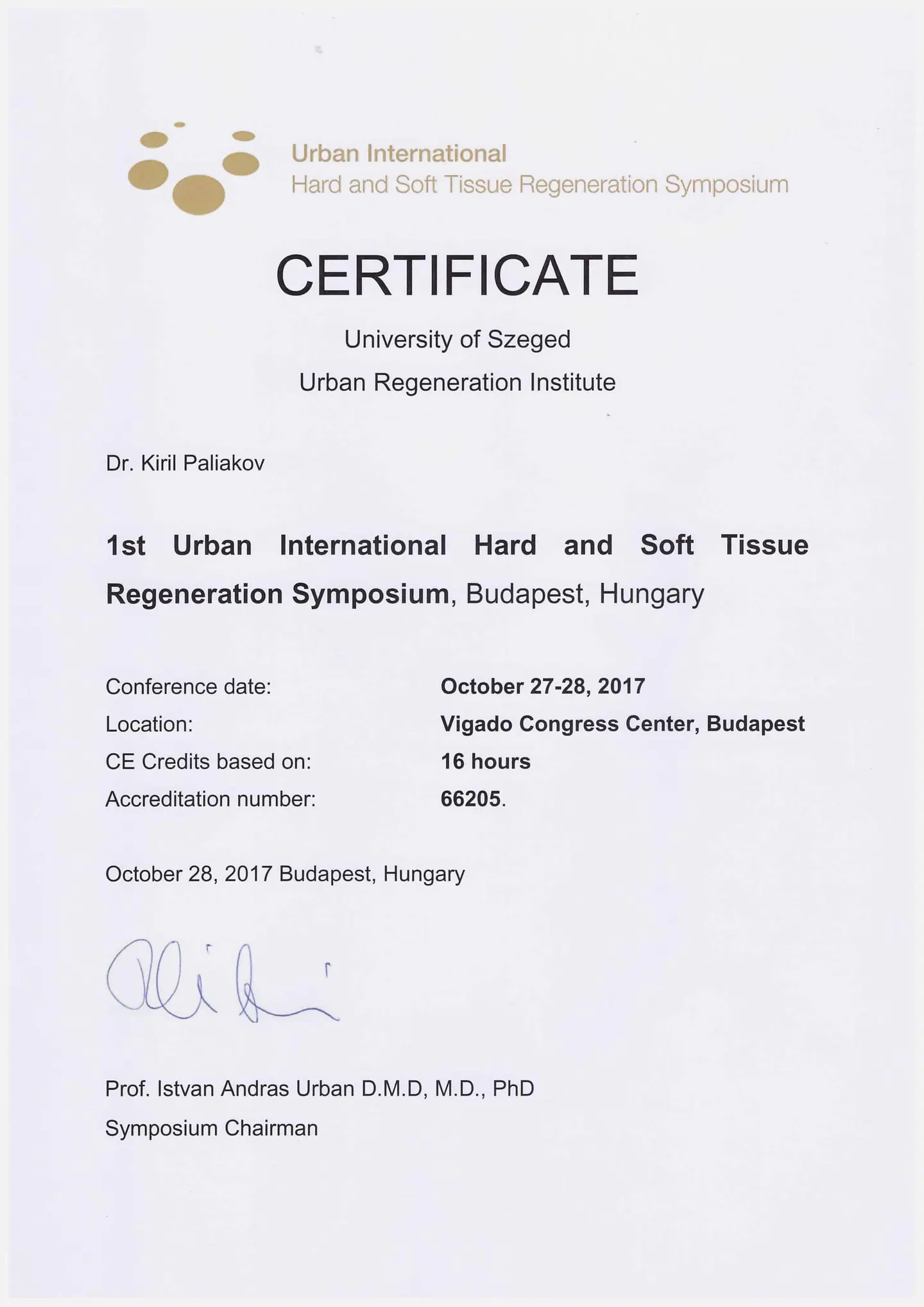 2017 год - обучение у Иштвана Урбана в Будапеште (Венгрия).